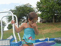 The last weekend and Tuesday and Wednesday this week I had my four-year-old grandbaby Jordyn here. She loves the backyard pool this summer. Last year, she spent every swim session with both arms firmly gripped around my neck. Today, she was splashing and a-crashing. She swam under water, jumped from the ladder and dog-paddled across the pool. She had a blast and I had fun swimming with her.