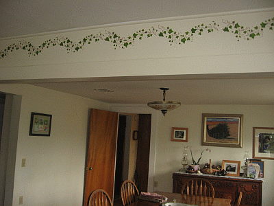 Ron was also upset that we were painting over the stenciling that Audra did years ago of vines. I think we had to though and will need to paint the window frames as well, since they are in such sad state.