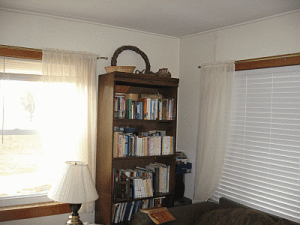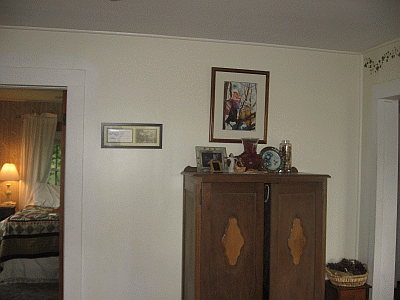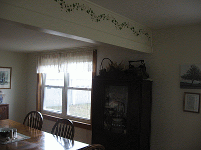 Ron was also upset that we were painting over the stenciling that Audra did years ago of vines. I think we had to though and will need to paint the window frames as well, since they are in such sad state.