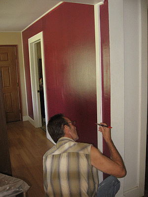 Ron was shocked by the cranberry, but now he likes it. At first, it looked pink and red while it dried and the painter had to add four coats to cover the white completely, even with primer! I sat and watched as the paint dried and it was fascinating (and I know that watching paint dry is the ultimate boring activity.) The colors changed quickly as the paint dried and it was really ama zing. See how red? After it dried it was much darker.