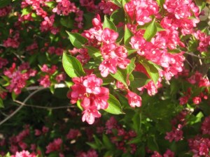 These roses were blooming like crazy. I thought they were an unusual color–yellow tinged with coral.