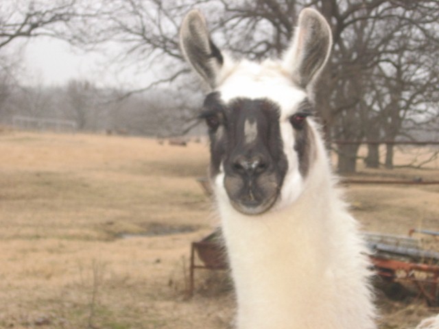 This winter we visited a llama ranch in Beggs, Oklahoma. What a sight the shaggy llamas were!They seemed curious but aloof toward us. I suppose they were hoping for handouts and finding we had none to offer decided to snub us. The llamas came in all colors brown, tan, white, black, and speckled or spotted with black and browns. I thought the creatures were most preposterious looking. I couldn’t watch them enough.