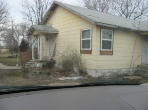 The house was owned by an elderly lady who lived in it 40 years with her cats and dogs. It was a wreck. In this picture you can see the only outside improvements so far. New windows were installed in the front bedroom that were smaller than the previous windows.