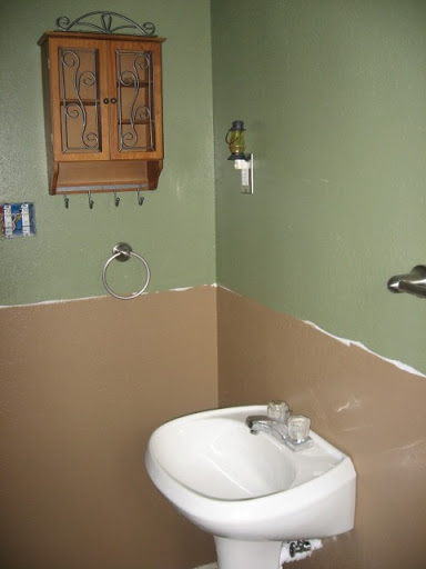This wall in the kitchen painted red really spiced up the room. The lower cabinets and the stove will fit here.