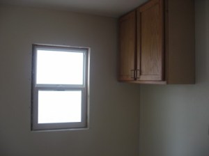 This is a shot of the south-east bedroom which was previously used as a laundry and plant room. The new windows are so nice. A closet built by two of the boys hasn’t got a door yet, but all in good time. The boys built closets in all three bedrooms and closed in a pantry and space for washer and dryer along one side of the kitchen. Adding convenience and saving space makes the house feel larger.