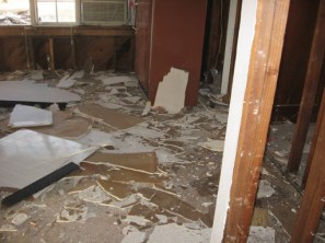 The old sheetrock walls and celings had to be torn out and hauled away. Rotten boards had to be replaced.