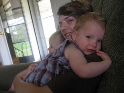 Alton loves all the babies. Here he rocks Jacob and Emma Irene.