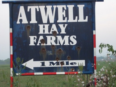 Some irresponsible person shot this sign full of holes that have rusted, still I like this one. It is a good landmark. This sign is three miles from my house along Highway 16.