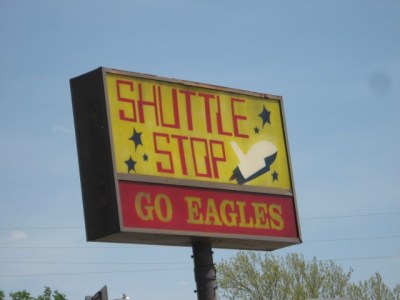 This sign is missing a few letters, but it stills shows that people here love baseball!
