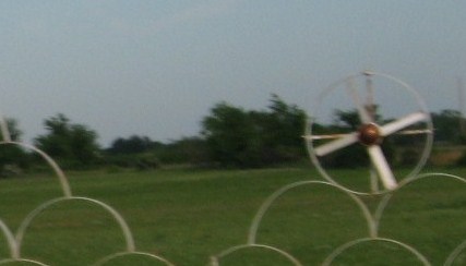 The half-circles build up like clouds and to set it off there are on each side whole circles set with spinners to look like airplane propellers. See below.
