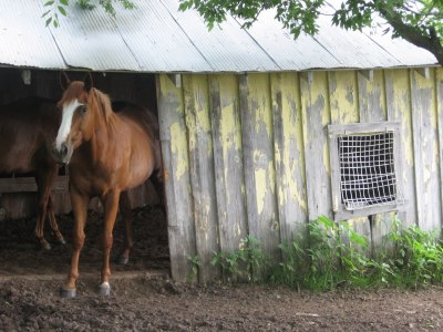 The old farm house and detached garage and shed used to be painted yellow. Maybe this horse stable was once used as a chicken coop? I wondered about this window. What’s the point?