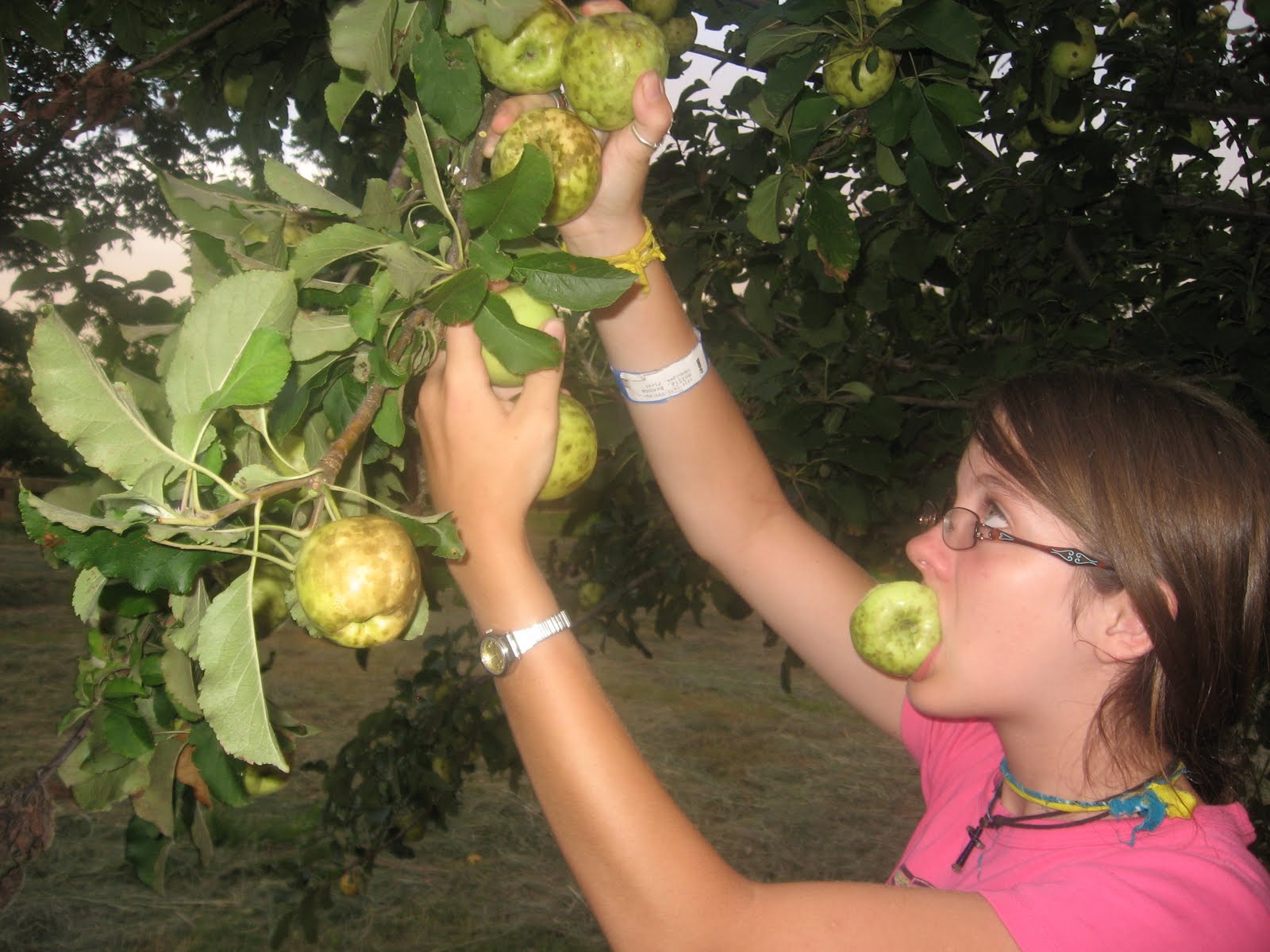 | Even in the evening it was very hot outside and Brenna was picking from the lower branches. |