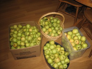 | We picked only about two bushels. There are plenty more on the two trees. |
