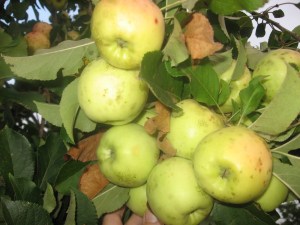 | Golden Russets are the first variety to ripen in our little fruit orchard. They are sweet and a bit tart with a crunchier texture than Granny Smith apples. |