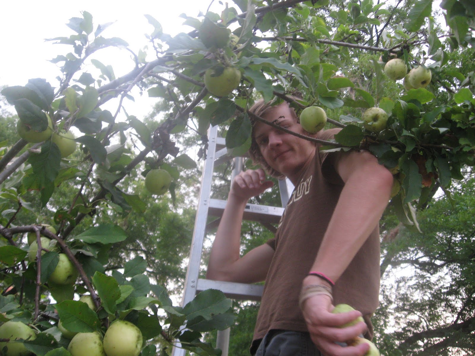 | Here’s the dream-boat Alton on the orchard ladder. |