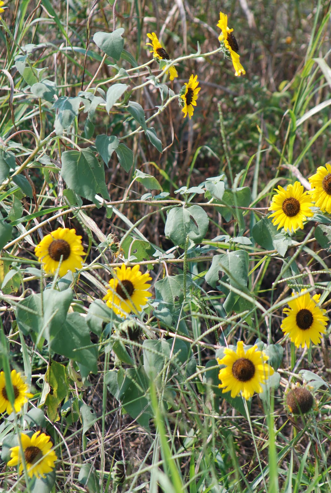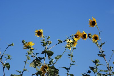 Sunflowers are a spectacle in September. The bloom along fences and in ditches, low places and in fields.
