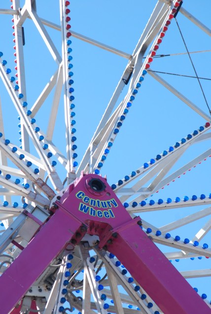 I stopped to watch the Ferris Wheel turn, but it stopped and the girls seated way up top screeched with delighted false fear as their seat swung. When I came back to earth, I saw Dad up ahead in the crowd and ran to catch up.