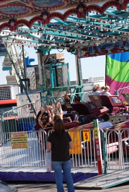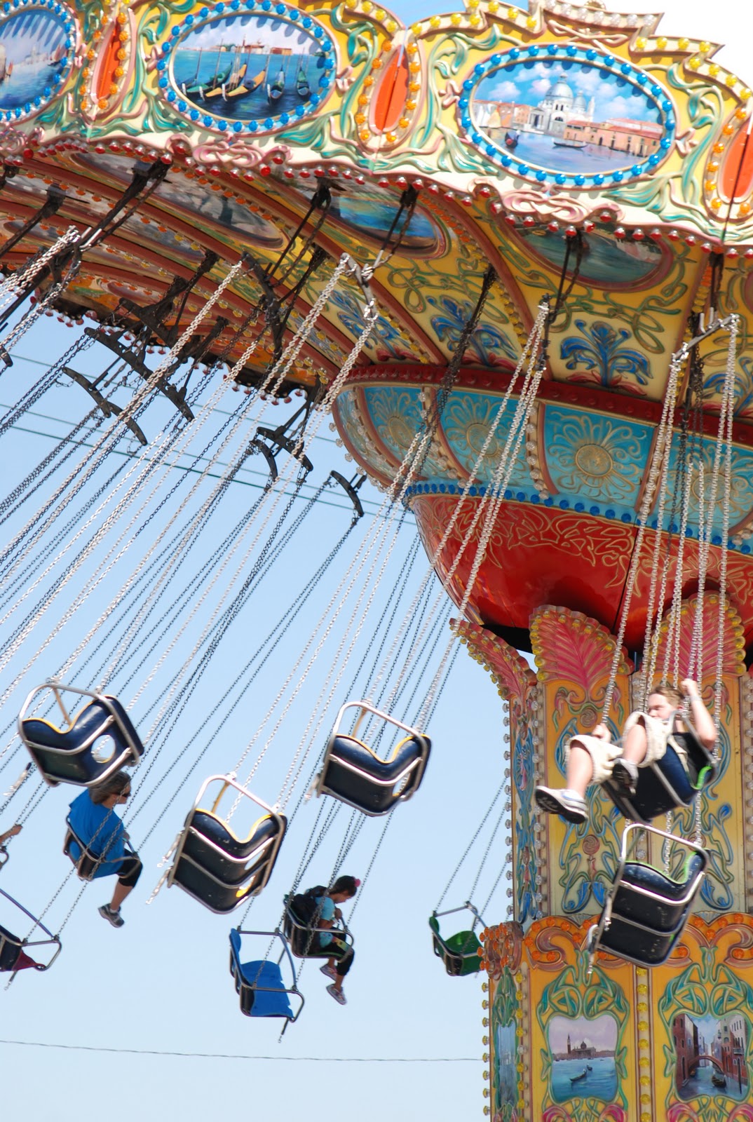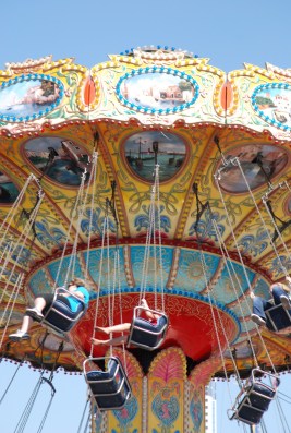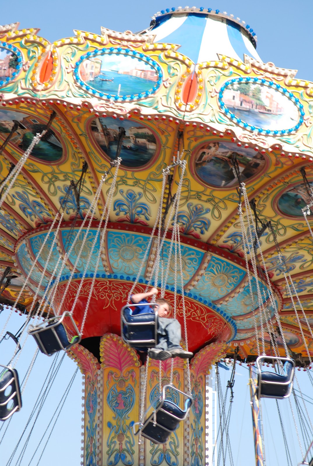 As we entered the fairway, I was star-struck. Everything was loud, and colorful, and bright. Everything was moving. The merry-go-round piped calliope music. People laughed, squealed, shouted, and called out. Hawkers pled with us to try our hand at their games. Rides sqeaked, squawked, rang bells, and buzzed as we passed.
