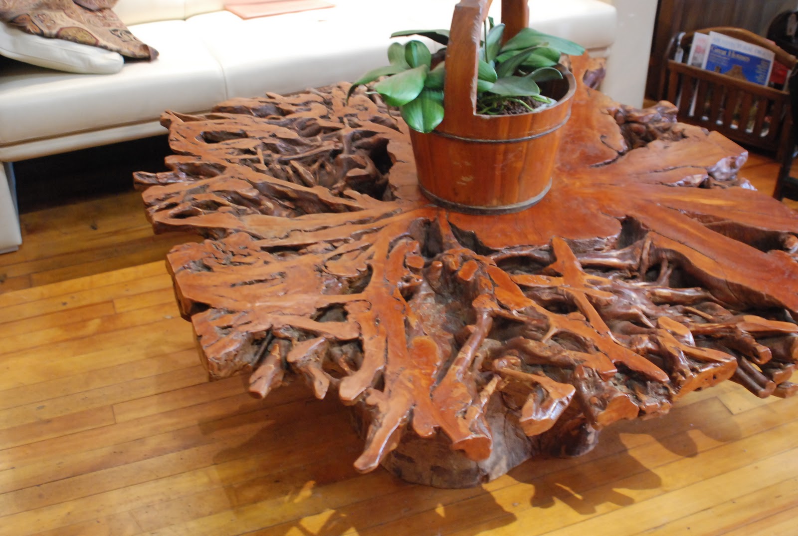 Table made of a bald cypress log