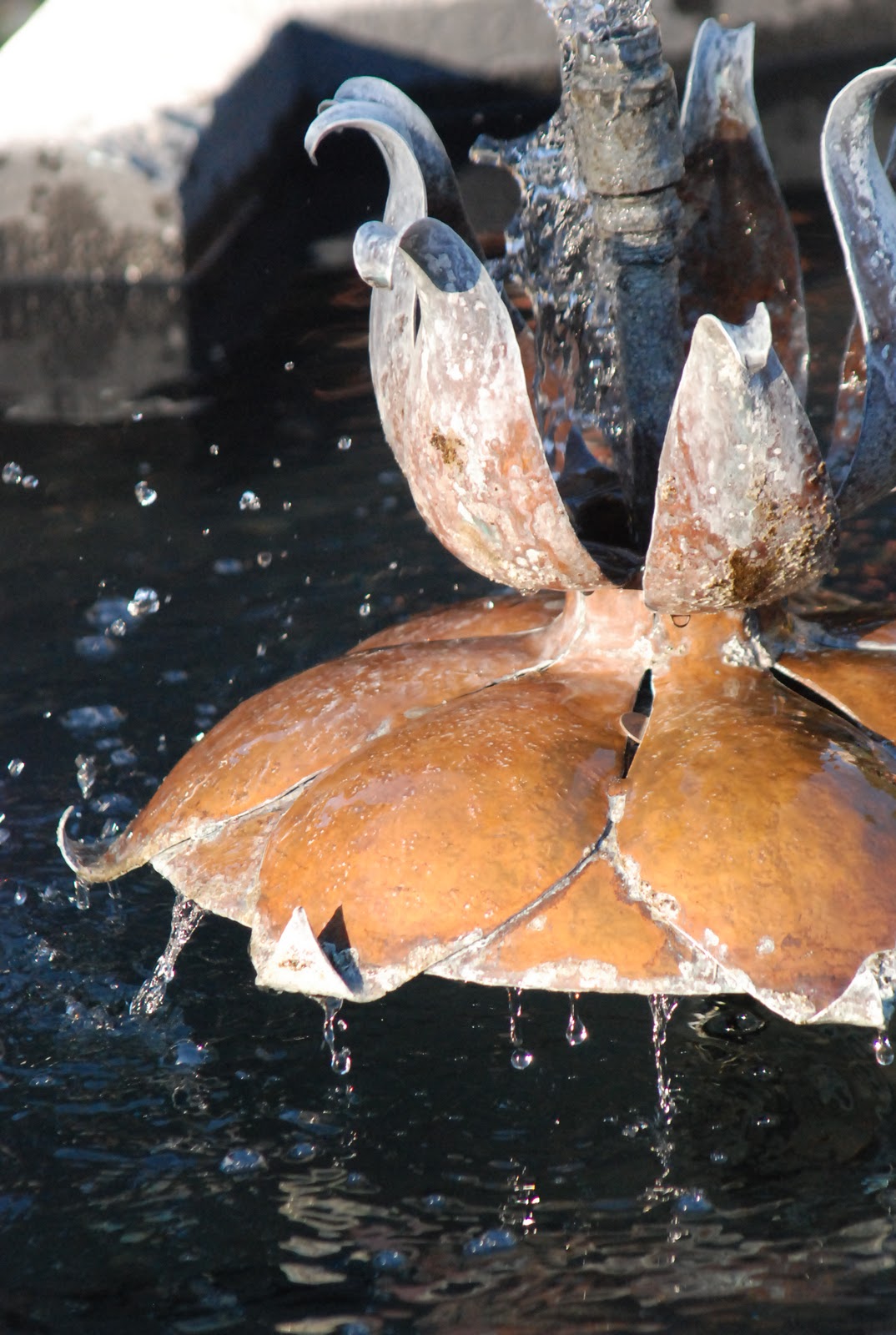 Lily fountain in the back gardens of the Thomas Home