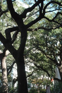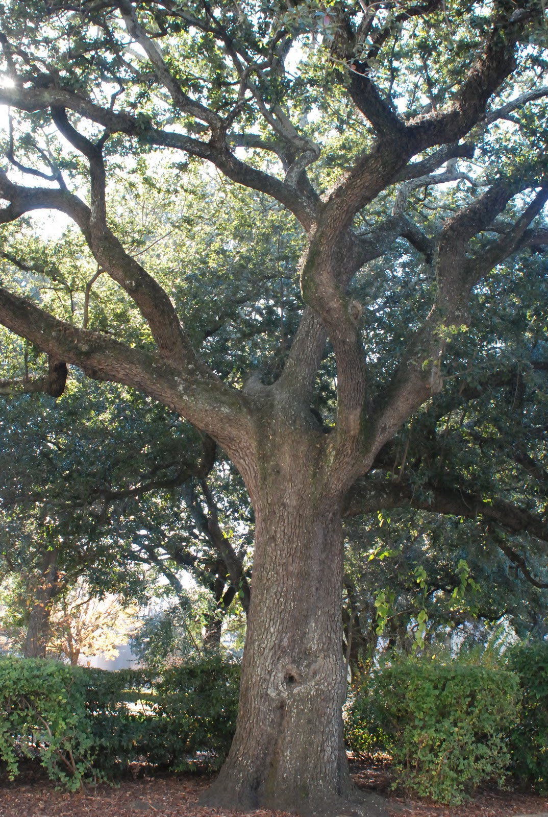 Spreading oak trees