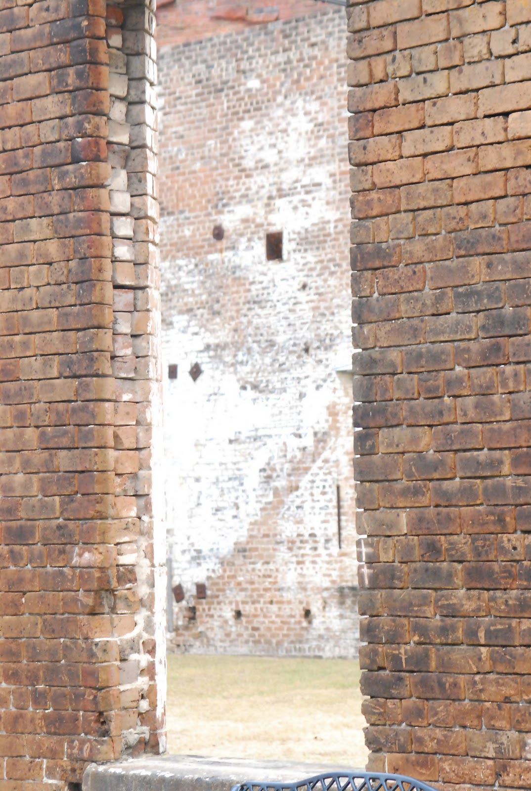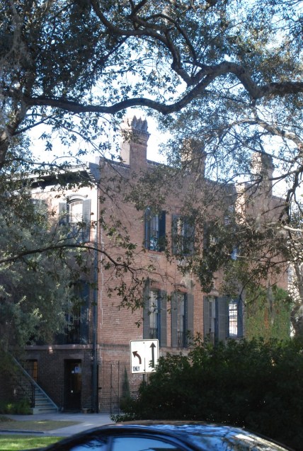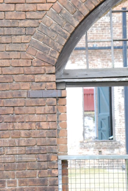 Bricks. I love the permanency of bricks. Anything built of bricks is built for the long haul, is built to last. My trip to Savannah afforded me glimpses of bricks from many perspectives from sidewalk to window and door frames to rooftops. The windows of this old building which houses an art gallery were large and unusually shaped.