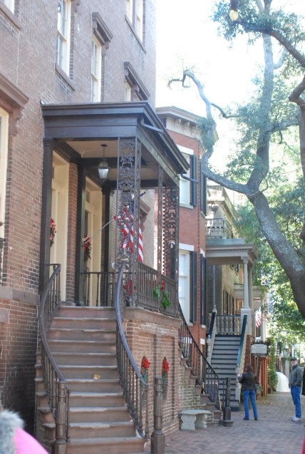 Brick homes with brick staircases, many which had fallen into disrepair, have been restored in the historic section of Savannah.