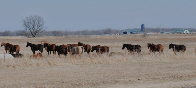 Pastures are filled with horses who stand with their tails to the north wind and face the south as if they long for summer. Herds of beef cattle graze slowly across brown meadows. Come January, new calves appear nearly every day to run playing and butting heads beside their grazing mothers.