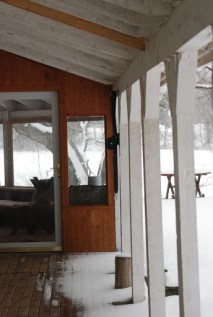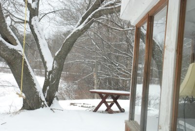 Outside the livingroom window the screened porch and the picnic table.