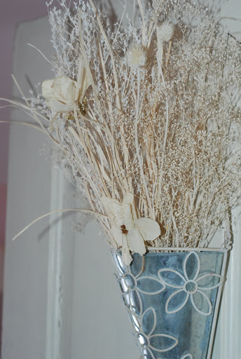 Dried flowers in a metal door hanger . Julie’s room at Grandpa’s house.