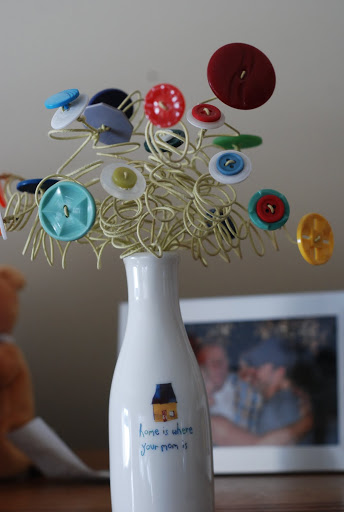 The button bouquet says, “Home is where your mom is.”
