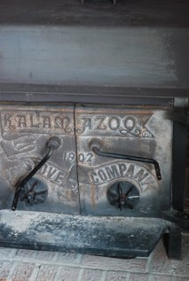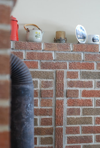 Cross in bricks behind the woodstove built by Mr. Chinard.