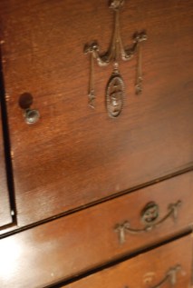 Front detail of the dresser. The top doors open to drawers