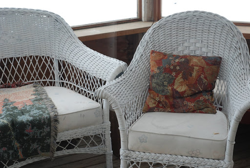 Wicker furniture on Grandma’s screened-in porch.
