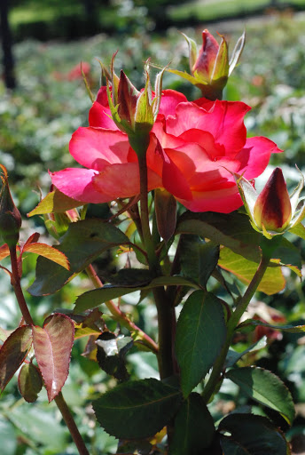 This past week, we had a wonderful time visiting the Tyler Rose Gardens in Tyler, Texas. The roses were a week or so past their prime, but still beautiful. Of course, there were many other flowers besides the roses – lilies, camellias, daisies, hydrangeas, nasturtiums, columbines, snapdragons, and more. I could have stayed there for weeks! We had a nice lunch on a perfect sunny warm breezy day.We sat under huge shade trees with the scent of roses wafting around us, birdsong and the company of family. What a nice day to remember. Come walk with us.