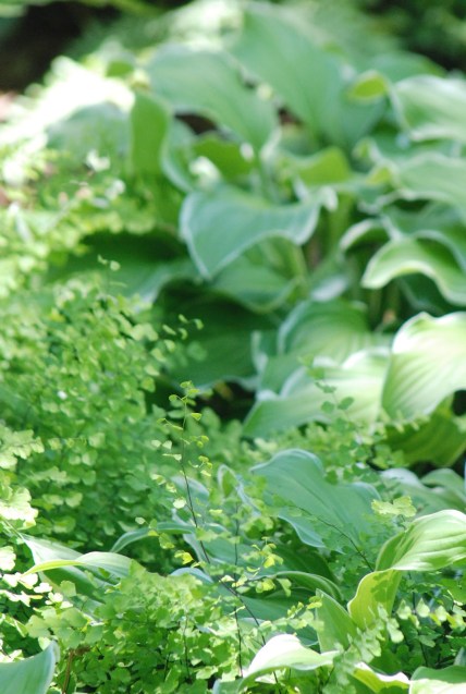 The green of fern and hosta.