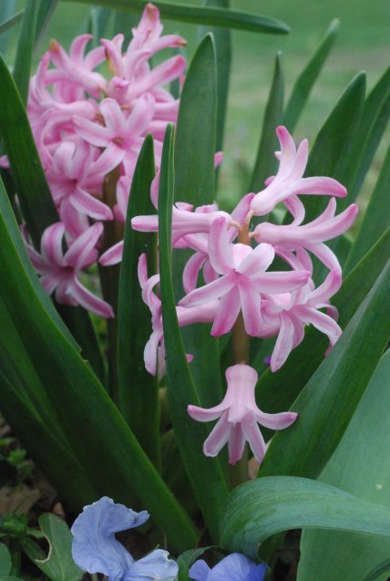 The green of hyacinth leaves.