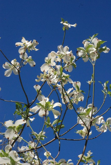 The sturdy white of dogwood blooms,