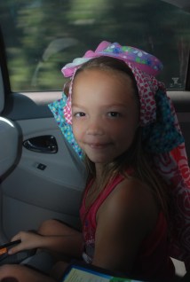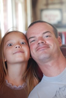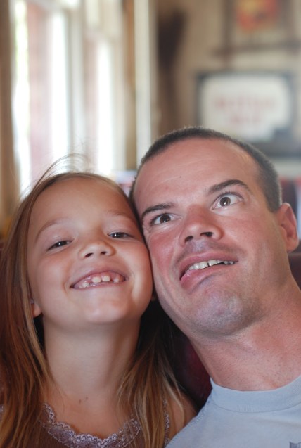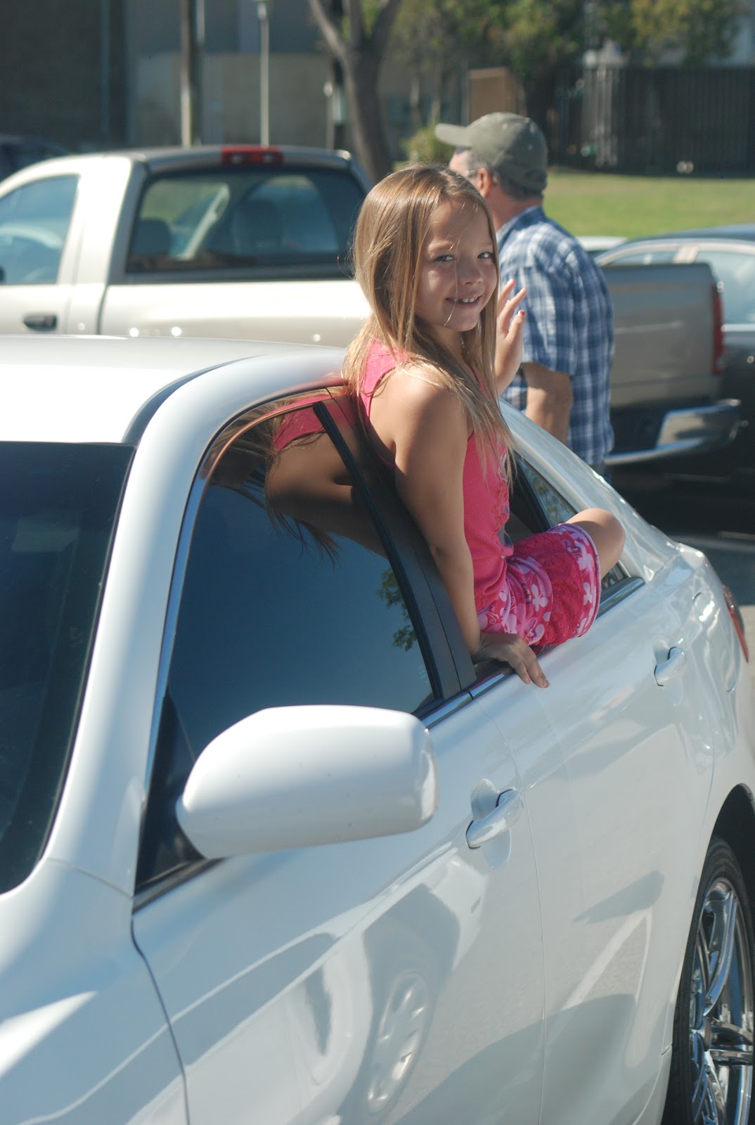 Riding in Daddy’s snazzy car. Well, really just sitting in a parking lot in his snazzy car