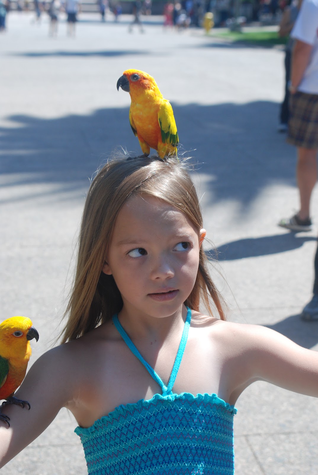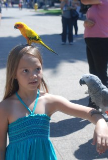 You played with the birds and I think the bird man startled you when he put one on your head!