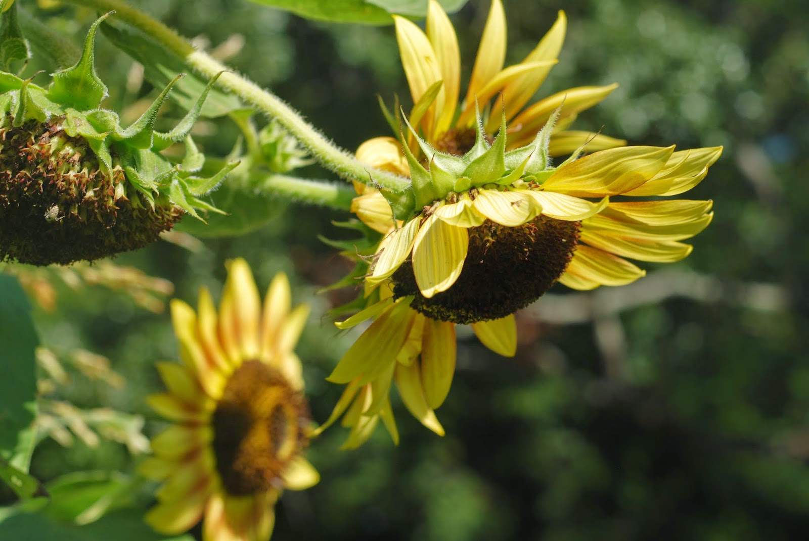Sunflowers bow their heads in the dark of summer nights, in the morning they lift them to the sky. As the day progresses, the sunflowers turn their faces toward the sun. We should also keep our chins up and our faces looking to the light of our Lord Jesus. Then we will find truth and be bold and strong as the sunflowers.