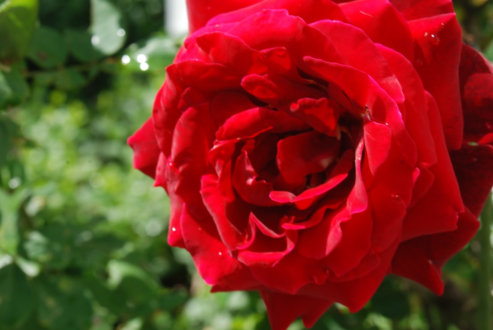 So I go. It is one of the most wonderful times of day. The grass is dew-drenched and sparkles in the sunshine like it has been strewn with cracked diamonds. A spider web stretches itself from the windowsill to the rosebush by the back door. Dewdrops glisten on every strand, studding it with light like the rhinestones on Liberace’s jacket.