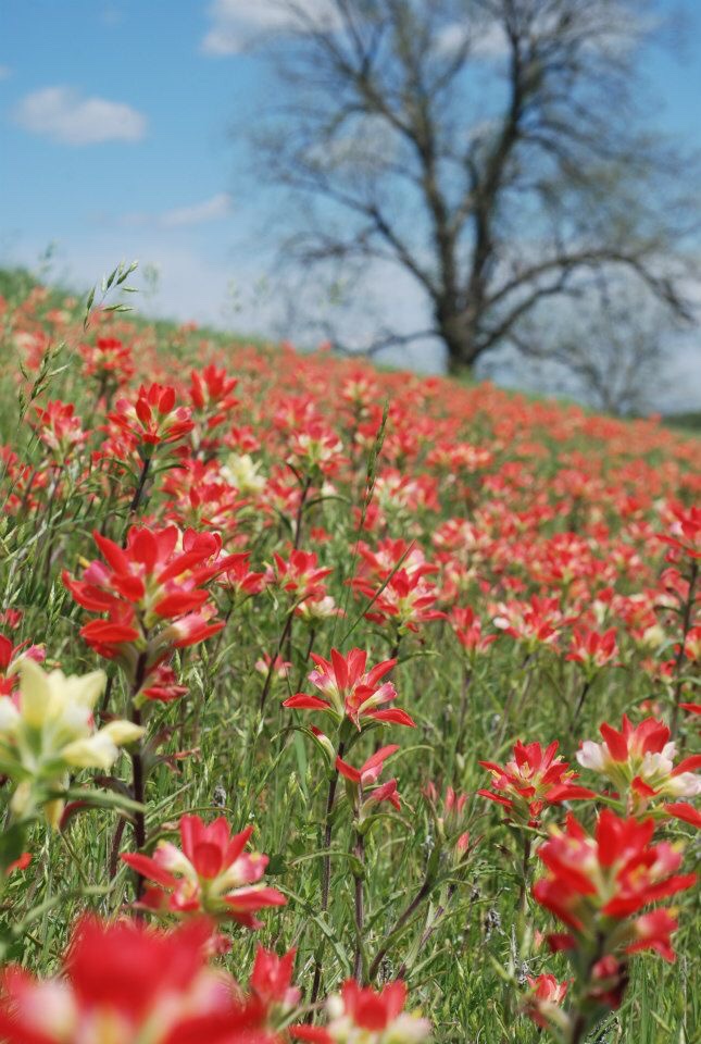The paintbrushes fill spring pastures and watery ditches with bright red color. I love these wildflowers of Oklahoma. They seem to grow everywhere and pop up to delight and surprise our hearts after the drab brown of winter.