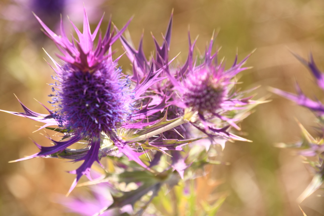 Leavenworth Eryngo looks like thistle but is a prairie wildflower. The leaves look like hands reaching out. It is a prickly poking handshake––very unfriendly. The top spikes are the flower petals, the bulb is seed, the lower spikes are the leaves. I found this patch near an old abandoned house.