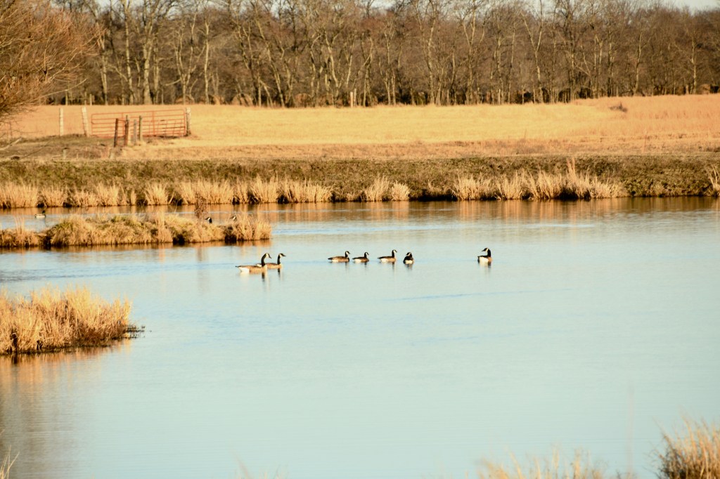 The Canada geese are here and enjoying the full ponds and lakes. I love to watch them in flight and hear their raucous honking.