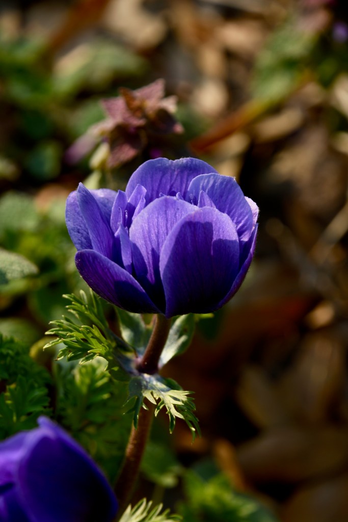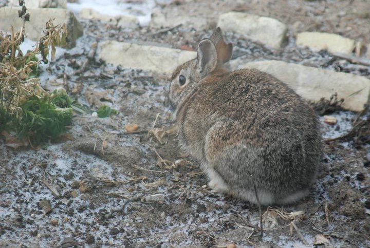 A crocus slips out from between stripped leaves and peeks about. A rabbit sits in the sun by the brick wall gathering in some sunshiny notes for the still cool evenings and nightfall.