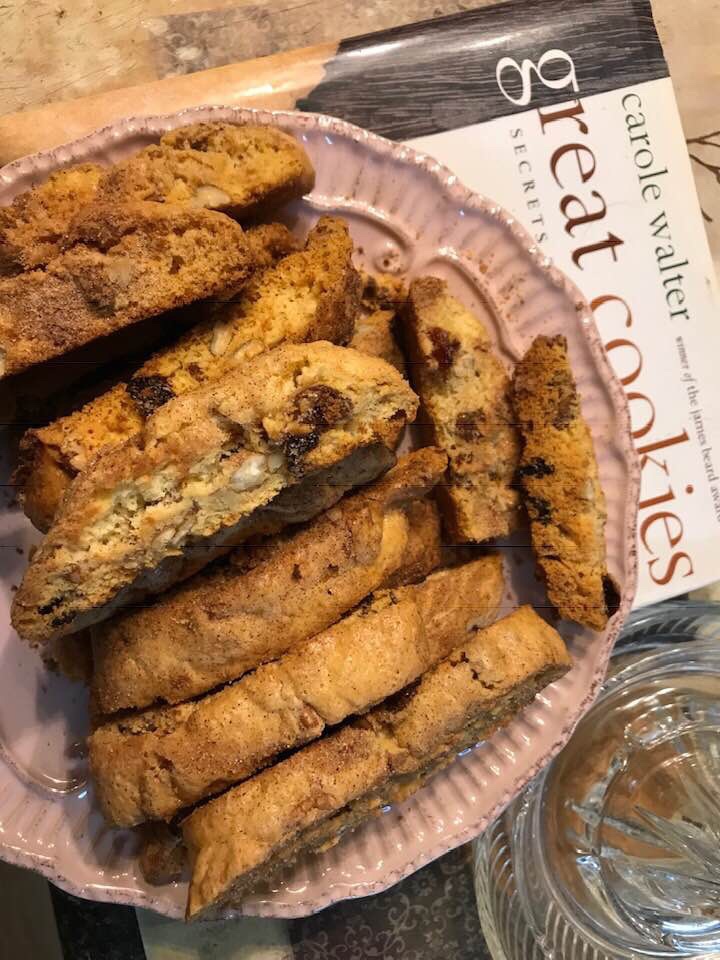 Biscotti is another favorite at my house since we are coffee lovers. I like to bake bread and cinnamon rolls and also pies and cookies. Pies are to me either a double crusted fruit or a pecan. One of the blessings of owning the orchard is that I always have plenty of pecans for baking. Pecans are versatile and so there are many things I can bake with them. We also eat them in salads and raw. I often bake peach and berry cobblers for company. Cobblers are easier than pies and along with some Blue Bell ice cream will feed a crowd.