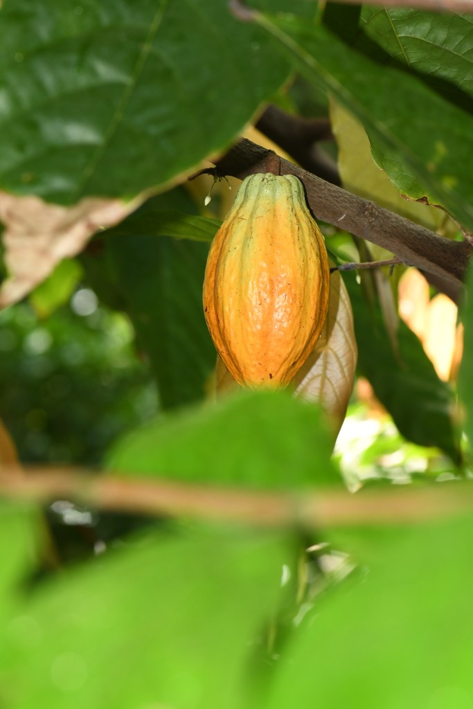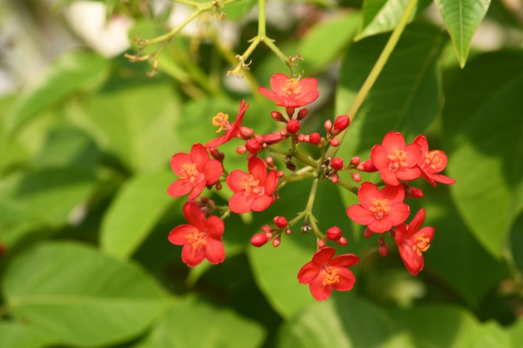 One of my favorite places to visit is the Myriad Gardens conservatory in Oklahoma city. It is a tropical jungle three stories tall glass cylinder-shaped building full of trees, plants, and waterfalls. Pathways lead to misty places where flowers peep out from plants, vines twist and tumble, and trees produce wonders like cocoa beans, star fruit, macadamia nuts, dates, coconuts, and mangos. Birds fly free in the space, lizards soak up heat on rocks and “garden people” find amazement and a spot to cool off by streams and waterfalls. Right there in the center of a huge city—is a piece a jungle.