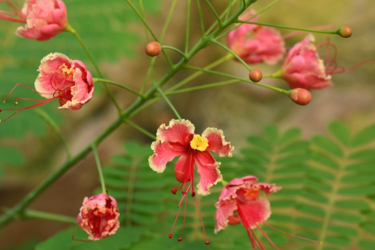 I could stay all day and walk the overhead bridge through the tops of the palm trees and see the flowers and fruits there. I could climb the rock stairs and paths to see the desert plants and explore the hot regions. I could walk in the outer gardens and watch koi and ducks swim. I could spend all day looking at the orchids and tropical flowers not normally seen in my part of the planet.