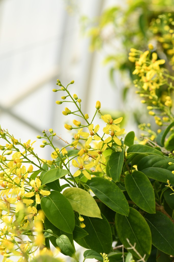 I would love to visit at night once to hear how the sounds change, to see which flowers bloom when darkness falls, and which close up. I would like to feel the darkness, the cooling effect of the sun’s departure from the curved panes of glass, see which creatures come out and which stay hidden away. I remember the song that was sung by Louis Armstrong which speaks of the dark sacred night, “And I think to myself––What a wonderful world.”